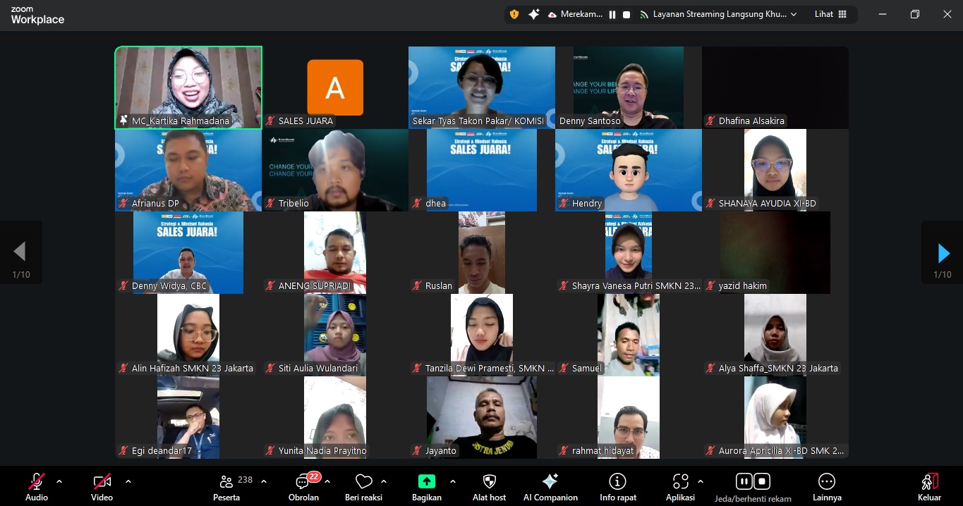 Kegiatan yang berlangsung secara daring melalui YouTube dan Zoom ini diikuti lebih dari 300 peserta dari berbagai daerah. Antusiasme tersebut mencerminkan besarnya perhatian masyarakat terhadap profesi sales, yang menurut data Badan Pusat Statistik (BPS) menempati posisi ketiga terbesar dalam jumlah tenaga kerja di Tanah Air, dengan lebih dari 30 juta orang terlibat di sektor penjualan.