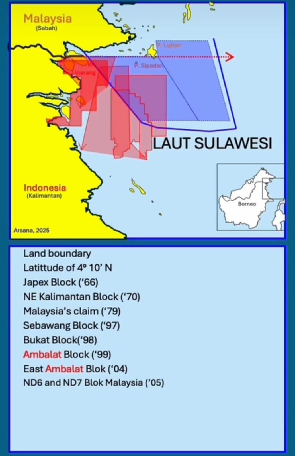 Ia melanjutkan, pada tahun 2005, Malaysia mengajukan blok konsesi yang diberi nama ND6 dan ND7. Lokasinya tumpang tindih dengan blok yang sudah diklaim Indonesia, termasuk Ambalat. Inilah yang menjadi pemicu kegaduhan 20 tahun lalu. Jadi, terjadi tumpang tindih dan memang belum ada kesepakatan.
