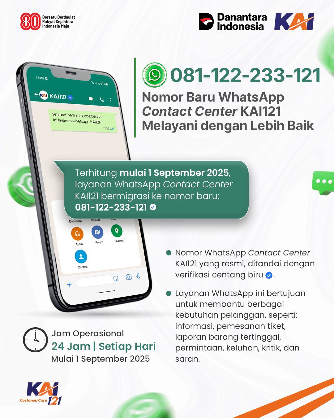 Perubahan nomor ini bukan sekadar pemindahan kontak, melainkan bagian dari upaya KAI untuk menjawab meningkatnya permintaan informasi dari masyarakat. Dengan kanal yang lebih responsif, KAI berharap pelayanan menjadi lebih akuntabel dan mampu memberikan solusi cepat bagi kebutuhan pelanggan.