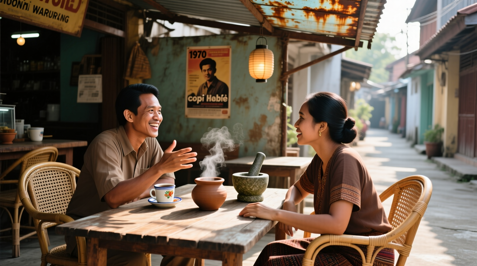 Di tempat seperti ini, obrolan ngalor-ngidul menjadi hiburan tersendiri. Tak ada batas antara pelanggan: mahasiswa, petani, dosen, seniman  semuanya setara di bawah payung aroma kopi.